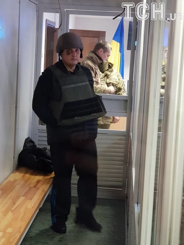Шепелева с гематомой под глазом доставили в суд в каске и бронежилете