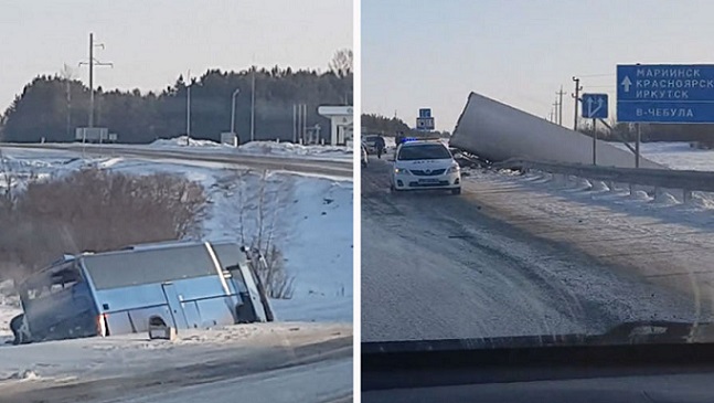 По предварительным данным, авария произошла из-за скользкой дороги – автобус занесло, водитель не справился с управлением и выехал на полосу встречного движения. Двигавшийся навстречу грузовик въехал в заднюю часть автобуса. После этого автобус вылетел с трассы и остановился на обочине в снегу.