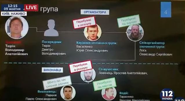 Также приводятся статьи УК Украины, по которым обвиняется Тюрин: ст.115 ч.2 п.6; ст.115 ч.2 п.11; ст.115 ч.2 п.12 (умышленное убийство, совершенное по заказу по предварительному сговору группой лиц из корыстных побуждений).