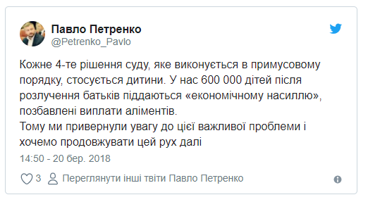 Размер алиментов планируют значительно увеличить, а за их невыплату – ввести пеню и уголовную ответственность. Об этом во вторник, 20 марта, заявил министр юстиции Павел Петренко в Twitter.