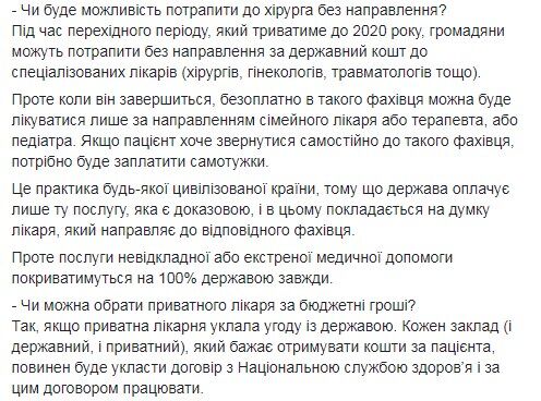 На время переходного периода (пока Украина полностью не войдет в новую модель медицинского обслуживания), то есть до 2020 года, украинцы смогут приходить на прием к узкопрофильными специалистам без направлений, а услуги будет оплачивать государство.