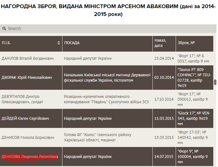 15 марта стало известно, что министр внутренних дел Арсен Аваков наградил новоиспеченного обмудсмена Людмилу Денисову наградным пистолетом.