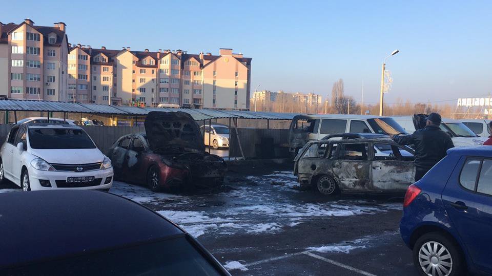 На стоянке в Киеве сгорели пять автомобилей на еврономерах (фото)