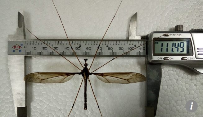 Крупного комара с размахом крыльев в 11,15 см обнаружили китайские ученые. Утверждается, что данный экземпляр является крупнейшим в мире среди этого вида насекомых. Об этом сообщает газета South China Morning Post