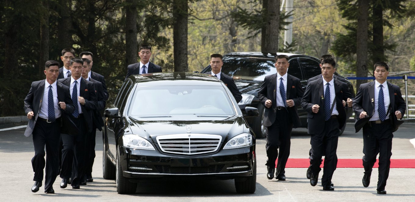 Когда же лидер КНДР после утренних переговоров с Ином сел в свой Mercedes, охранники оцепили автомобиль, сформировав живой щит, и трусцой сопровождали его.