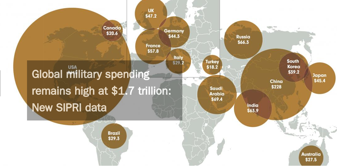 В 2017 году военные расходы составили $1,7 триллиона. Это на 1,1% выше показателей 2016 года.