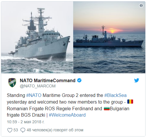 Замминистра обороны Украины по вопросам европейской интеграции Анатолий Петренко 24 апреля говорил, что Киев поддерживает присутствие кораблей НАТО в Черноморском регионе.
