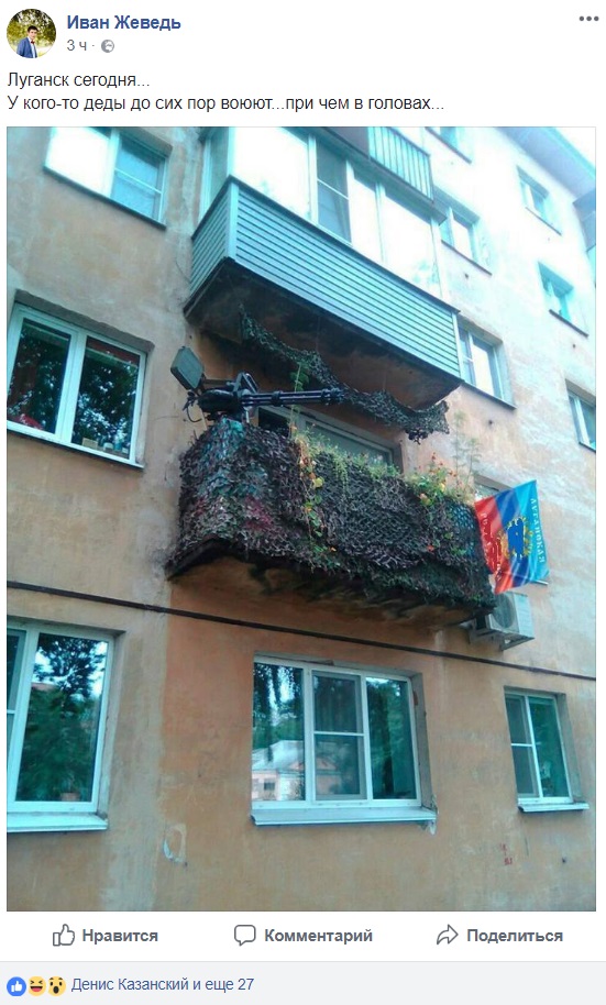 "Луганск сегодня... У кого-то деды до сих пор воюют... причем в головах..." - говорится в подписи к снимку.