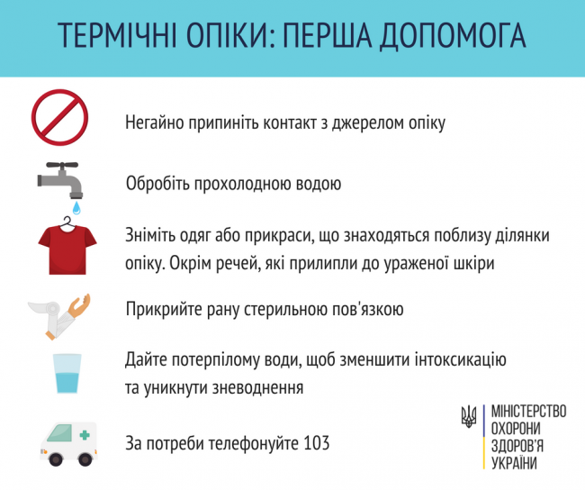 "Получивший термический ожог человек нуждается в адекватной первой помощи, при этом многие распространенные "народные" методы и средства либо не принесут какого-либо положительного эффекта, либо могут навредить пострадавшему", – подчеркивает и.о. министра здравоохранения Украины Ульяна Супрун.
