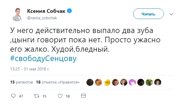 По словам Собчак, политзаключенный худой и бледный.