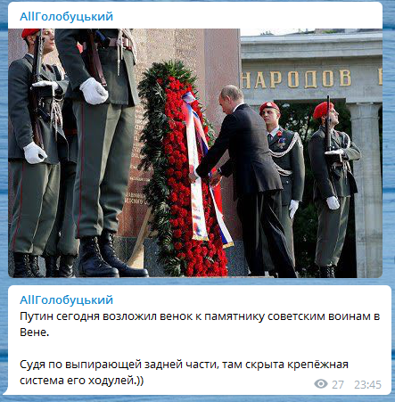 Пользователей озадачило новое фото президента России Владимира Путина во время возложения венка к памятнику советским воинам в Вене.