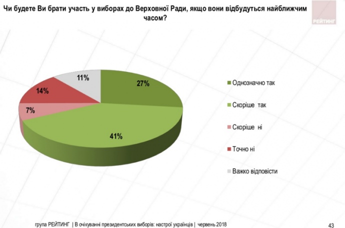 Если бы выборы в Верховную Раду проходили в ближайшее время, то на них пошли бы 68% граждан, при этом ни одной из партий они не отдали бы больше 17% голосов.