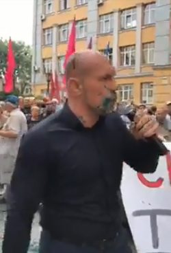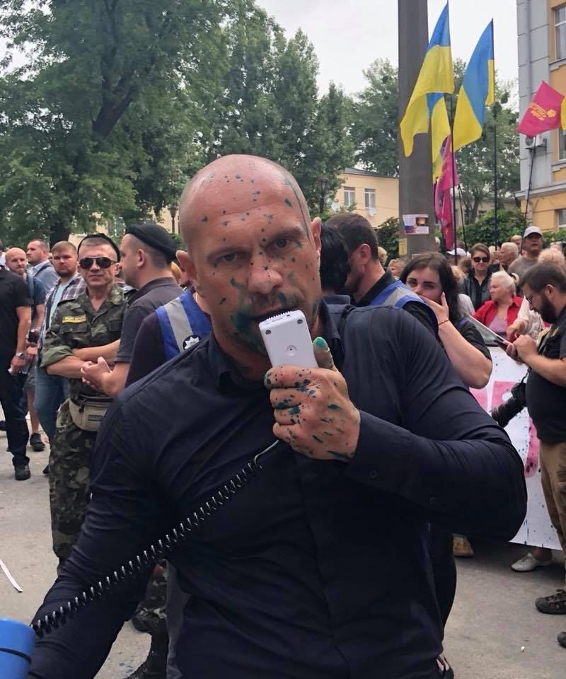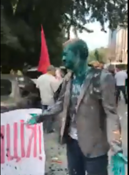 Напали на руководителя ЦПК как раз в момент, когда он подошел к Киве, самому "главе Соцпартии" также досталось – часть зеленки попала и на него.