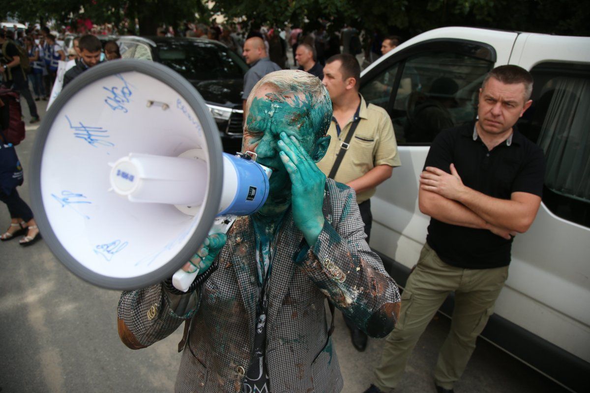 Страсти по Холодницкому: Шабунина облили зеленкой на митинге Кивы