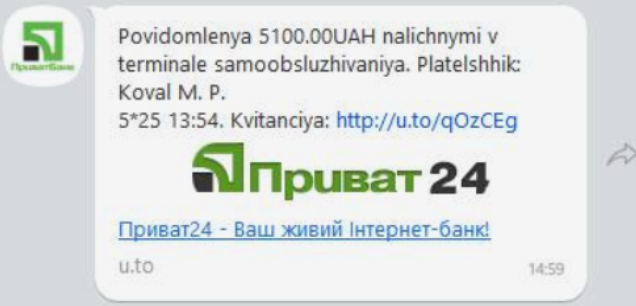 Как правило, сообщения поступают в электронную почту или мессенджеры (Telegram, Viber, WhatsApp и так далее). В них говорится о пополнении карточного счета посторонним человеком. Чтобы узнать больше о «случайно поступивших средствах», человеку предлагают перейти по ссылке, которая ведет на фальшивую квитанцию с фишинговым сайтом Приват24.