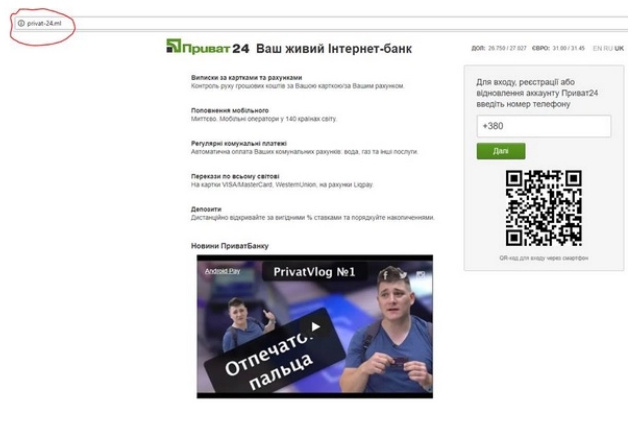 Эту аферу обнаружило подразделение кибербезопасности финансового учреждения. В ПриватБанке продемонстрировали, как выглядит фальшивая банковская страница.