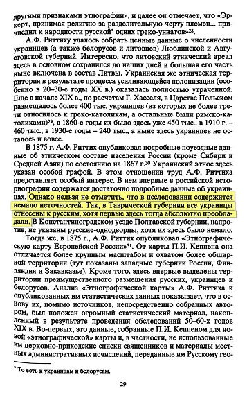 Первоисточником всех карт с российской Северной Таврией является "Этнографическая карта Европейской России", составленная российским этнографом и картографом Александром Риттихом в 1875 году. Однако при составлении карты он ошибся, так как в статистических материалах было отмечено преобладание украинцев (малороссов) на этой территории. Об этой ошибке этнографа ранее неоднократно писали.