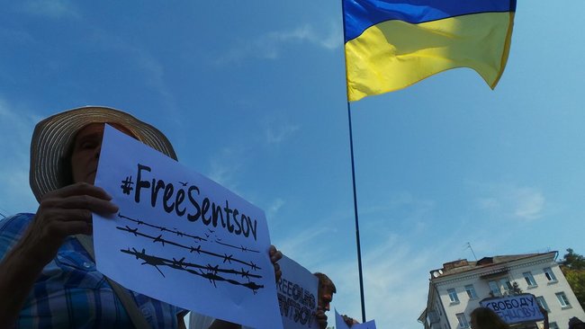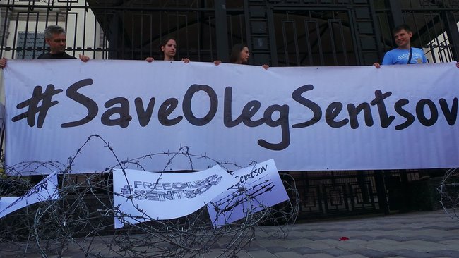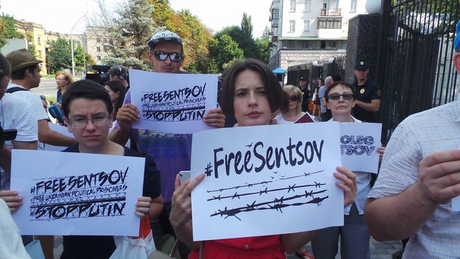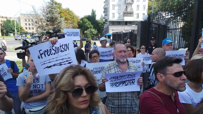 У посольства РФ в Киеве проходит акция в поддержку Олега Сенцова (фото, видео)