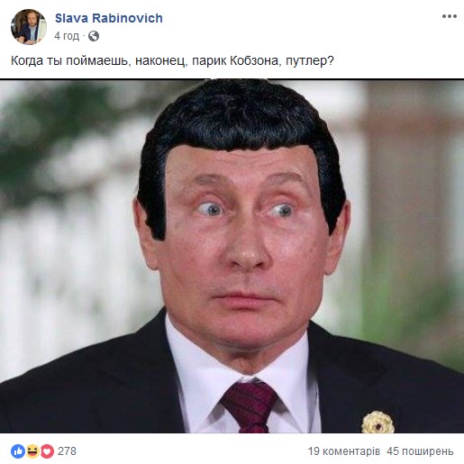 "Когда ты поймаешь, наконец, парик Кобзона, путлер?", - написал Рабинович.