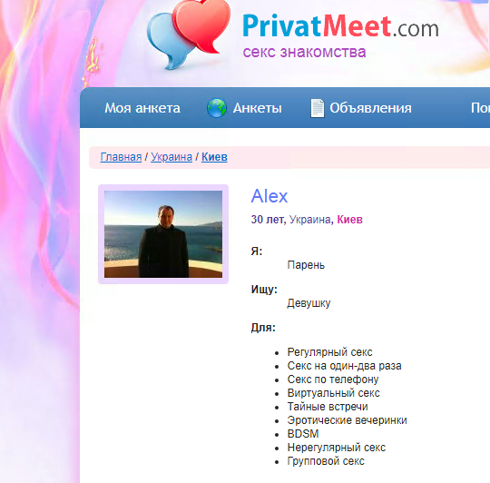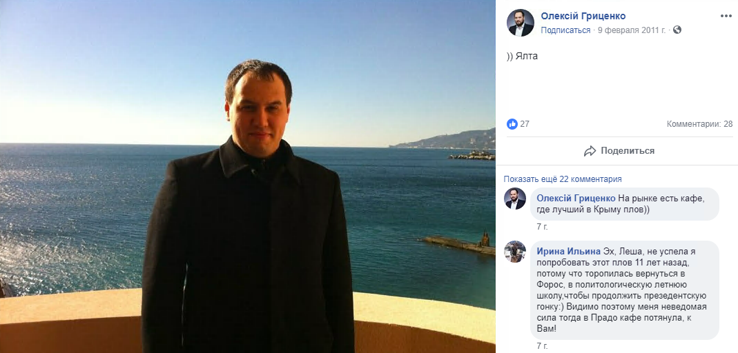 В анкете Гриценко указано, что он заинтересован в поиске партнерши в том числе и для БДСМ (садомазехизм). Насколько давно сын кандидата является пользователем ресурса, неизвестно. Однако, прикрепленная к анкете фотография похожа на ту, которая есть у него на странице Facebook и датирована 2011 годом.