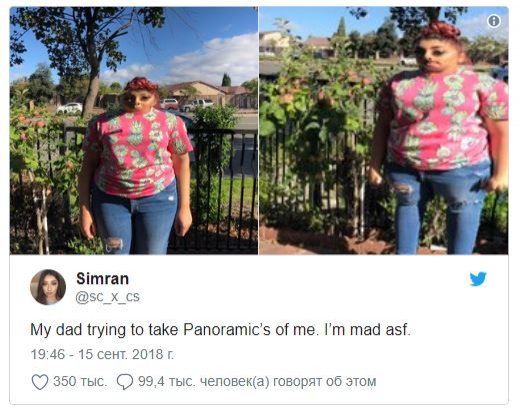В сети набирает популярности курьезные снимок пользовательницы сети по имени Симран. Девушка разместила в Twitter фотографию, которую накануне сделал ее отец. Как оказалось позже, устрашающее фото появилось в результате экспериментов с режимами съемки.