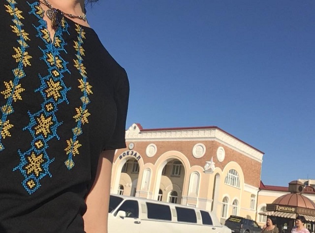 В сети появилось интересное фото девушки в вышиванке с желто-голубым узором, сделанное в оккупированном Крыму.