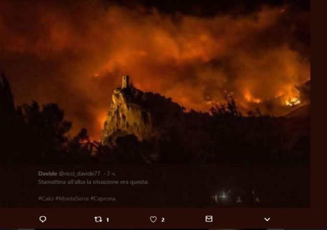В окрестностях знаменитого туристического города Пиза, в Италии, бушуют страшные пожары. Огонь стремительно распространяется и уже приближается к пяти населенным пунктам. Совладать с пожаром пока не получается, власти подключили авиацию.