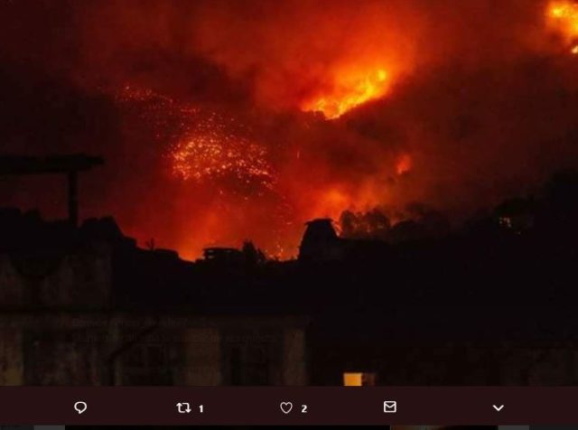 Пламя свирепствует на склонах горы Сера, что в провинции Кальчи, с вечера понедельника, 24 сентября.