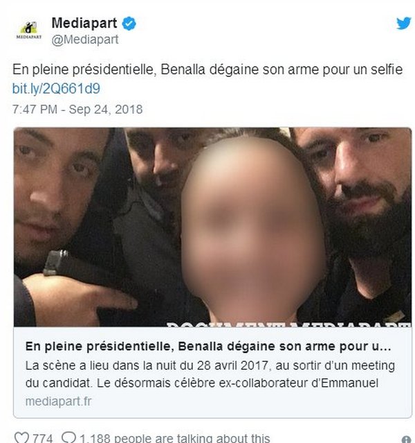В то время Беналля не имел право носить оружие за пределами штаб-квартиры партии Макрона «Вперед!». Это право было ему официально предоставлено лишь в октябре 2017 года. Адвокат Беналля заявил, что эта история искусственно раздута, чтобы нанести ущерб репутации его клиента.