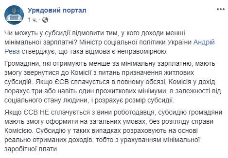 Данное заявление "Урядовий портал" выложил на официальной странице в Facebook.