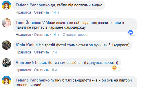 В комментариях к посту пользователи высмеяли махинации с ростом. "Путину б такие сандалеты – он бы был на полторы головы ниже", - отметили юзеры.
