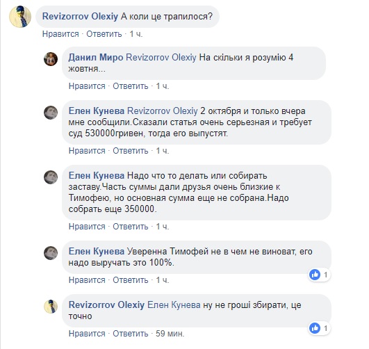 В комментариях президент в ГО "Єдність І Справедливість" Елен Кунева пишет, что суд требует в качестве залога 530 тысяч гривен, иначе Нагорного не выпустят.