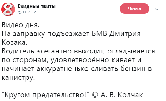 В России водитель служебного автомобиля заместителя председателя правительства РФ Дмитрия Козака на заправке воровал бензин.