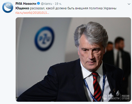 "После 15 лет враждебности к России Ющенко вдруг заговорил о стратегической важности развития с ней отношений для Украины. Проснулся, когда Киев все уже разрушил. Пусть он это объяснит закусившей удила украинской политэлите и ее невменяемым делегатам в ПАСЕ в перчатках химзащиты", - написал он в Twitter.