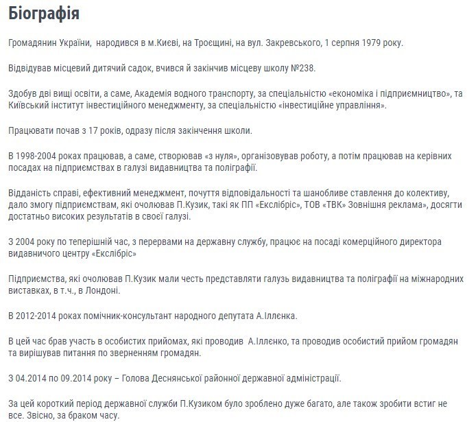Как говорится в биографии Кузика на сайте Киевсовета, с января по сентябрь 2014 года он возглавлял Деснянскую районную государственную администрацию (РГА).