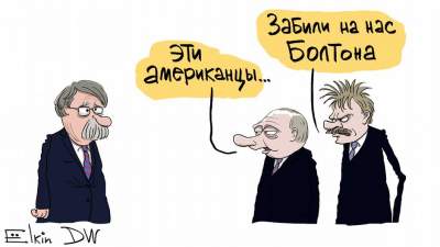 Американский президент Дональд Трамп отправил своего советника по нацбезопасности Джона Болтона в Москву обсуждать решение США выйти из договора с Россией о ликвидации ракет средней и меньшей дальности (РСМД). Карикатурист Сергей Елкин изобразил переживания россиян.
