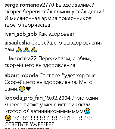 Поклонники в комментариях на странице Лободы в Instagram желают любимой артистке скорейшего выздоровления.