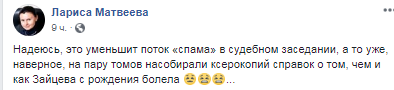 "По результатам обследования областными специалистами одной патологии в подследственной Зайцевой не обнаружено. Никаких противопоказаний для ее пребывания в условиях следственного изолятора нет", - сообщил о выводах комиссии начальник Управления здравоохранения ХОГА Богдан Федак.