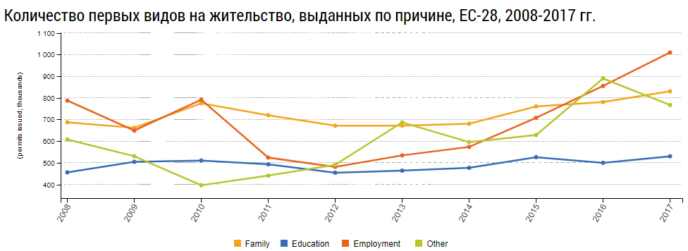 Основной причиной получения гражданами Украины таких документов стало трудоустройство (свыше 580 тысяч человек в 2017 году). Среди сирийцев основной причиной в запросах на документы была гуманитарная.