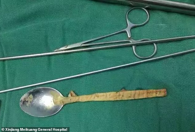 Обсудив лучший курс действий, врачи в больнице Синьцзяна решили, что лучший способ извлечь ложку — через рот. Пациенту дали общий наркоз, и команда врачей провела два часа, пытаясь достать 8-дюймовую ложку с помощью эндоскопического оборудования.