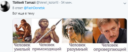 В комментариях к посту пользователи также начали размещать изображения, связанные с Россией и Донбассом, дополняя публикацию. Например, на одном изображении вставили фото пресс-секретаря президента РФ Дмитрия Пескова. А другим -хотели показать ситуацию на Донбассе, где во главе стоит уже погибший главарь так называемой ДНР Александр Захарченко.