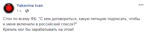 Так, журналист Иван Яковина в своем Facebook с сарказмом спросил, с кем можно договориться о появлении собственной фамилии в санкционном списке.\