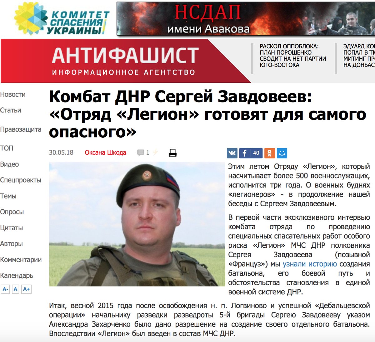 В "новоизбранный" "народный совет ДНР" не вошел один из главарей силовиков группировки, командир банды "Легион" Сергей Завдовеев.