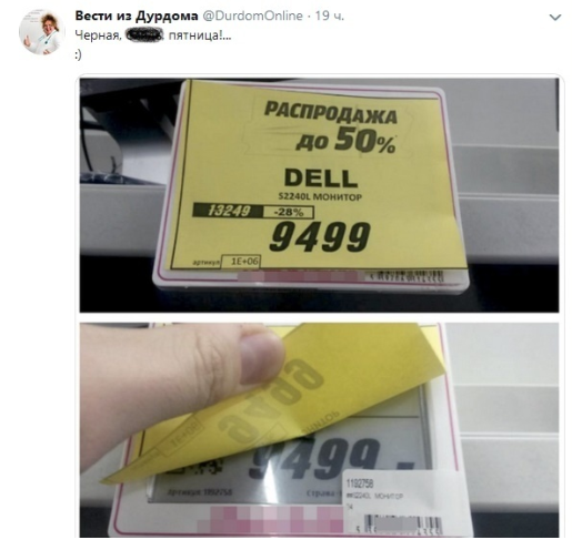 Хитрость продавцов в черную пятницу просто зашкаливает. В Сети уже опубликовали не одно фото, которое демонстрирует разницу между старым ценником на товар, и новым, «скидочным». Нетрудно догадаться, что разницы никакой нет.