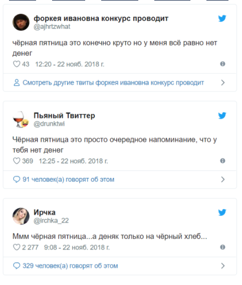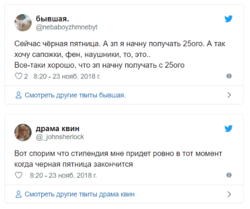 Многие жители Сети шутили о том, что отсутствие денег способно сдержать приступы шопоголизма. А также о том, что Черная пятница — это выдумка магазинов с целью повышения прибыли, а все скидки является хитростями.