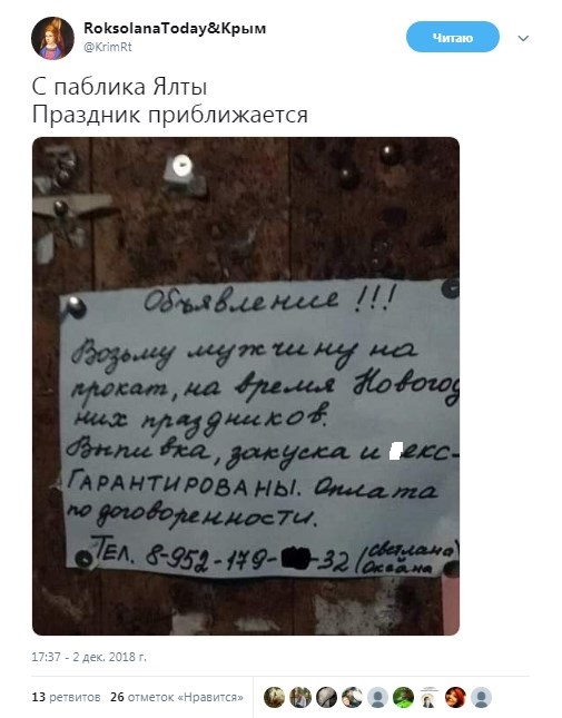 В аннексированном Россией Крыму готовятся к Новому году довольно странным образом, о чем сообщают в уличных объявлениях.