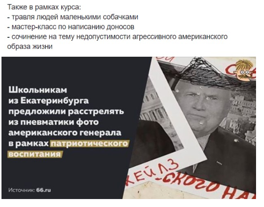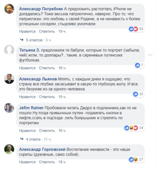 А тем более, не оценили пользователи Сети. «Также в рамках курса: травля людей маленькими собачками; мастер-класс по написанию доносов; сочинение на тему недопустимости агрессивного американского образа жизни»,«а предложить растоптать iPhone НЕ догадались? Тоже очень патриотично, наверное. О том, что патриотизма — это любовь к своей Родине, а не ненависть к более успешным соседям, стыдливо умолчали», «запахло Северной Кореей. Родители одобрили?», — пишут в Интернете.