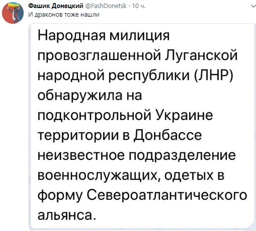 "Народная милиция ЛНР" "обнаружила" на подконтрольном Украине Донбассе военных в форме НАТО.