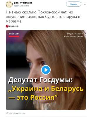 Отрывок интервью Поклонской опубликован на странице pani Walewska в Twitter.