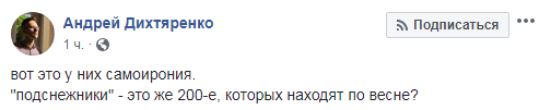 "Вот это у них самоирония. "Подснежники" - это же 200-е, которых находят по весне?", - написал он, имея ввиду ликвидированных бойцов "груза 200".